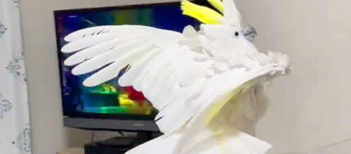 大胆なダンスを踊る『オウム』…自分より立派なトサカがテレビに映ったときの反応が最高すぎると191万表示「萎縮してるw」「爆笑した」