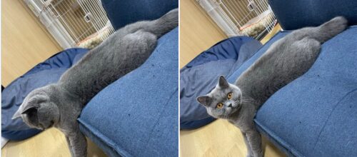 すると突然、まのちゃんが両手を掲げて、自分の頭を挟むようにして抱え込みました。いったい何が始まるのか見守っていると…。