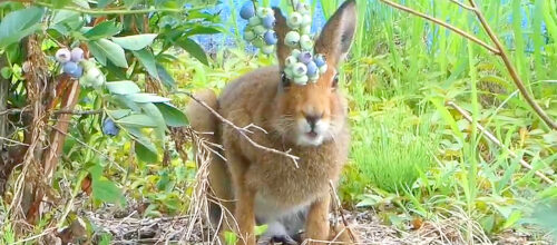 農園のブルーベリーを勝手に食べる『エゾユキウサギ』…予想外に収穫の手助けをする姿が58万再生「めっちゃ堂々としてるw」「優しい世界」