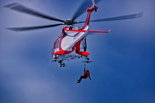 現場では、ヘリが屋上に接地せずに空中で停止し、救助隊員を降下させたり、要救助者を引き上げたりする場面が想定されます。