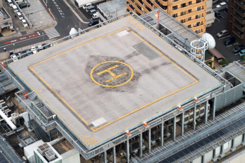 ヘリが安全に降りるには、床の強度、進入・離陸のための空間、照明や消火設備など、複数の厳しい条件を満たす必要があります。