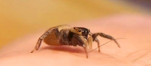 『ハエトリグモ』を体の上でお散歩させた結果…器用すぎるまさかの行動が18万表示「蜘蛛って爪あったんだ」「毛を調べてる?w」