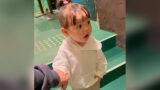 『ペンギンの置物』に興味津々な1歳半の男の子